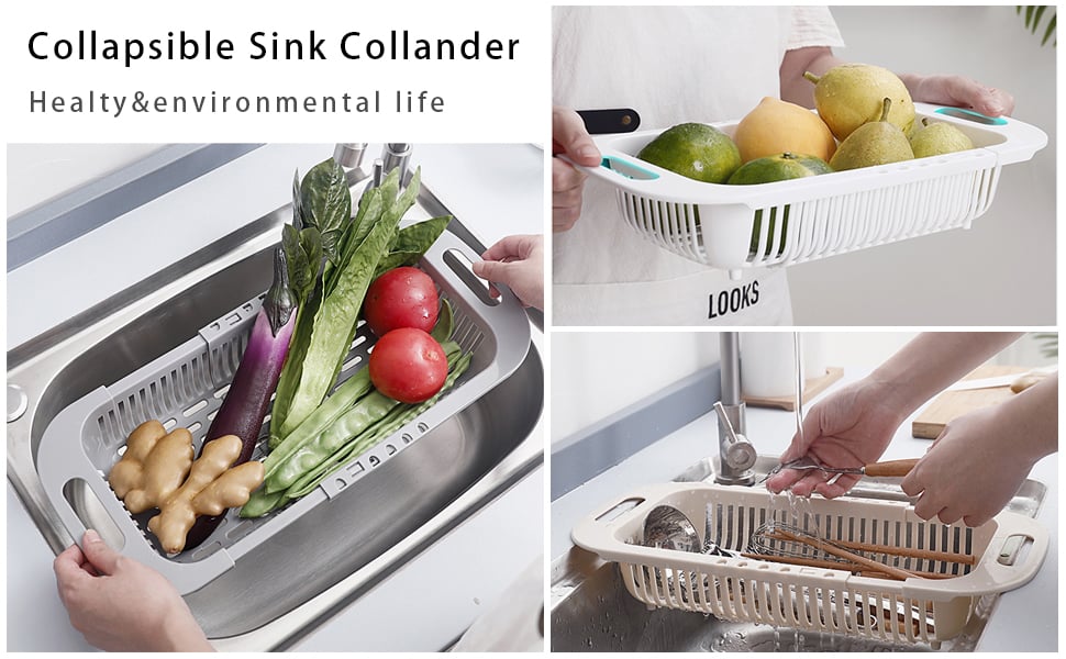 Multipurpose - Easy to use and versatile. Stretch over your kitchen sink to rinse veggies and fruit, drain pasta, thaw frozen food or use as a dish rack to air dry utensils, cups and small plates. It's also comfortable to hold in hand and can be used on your counter as a basket. No matter how you use it, we think you'll love this colander's versatility.